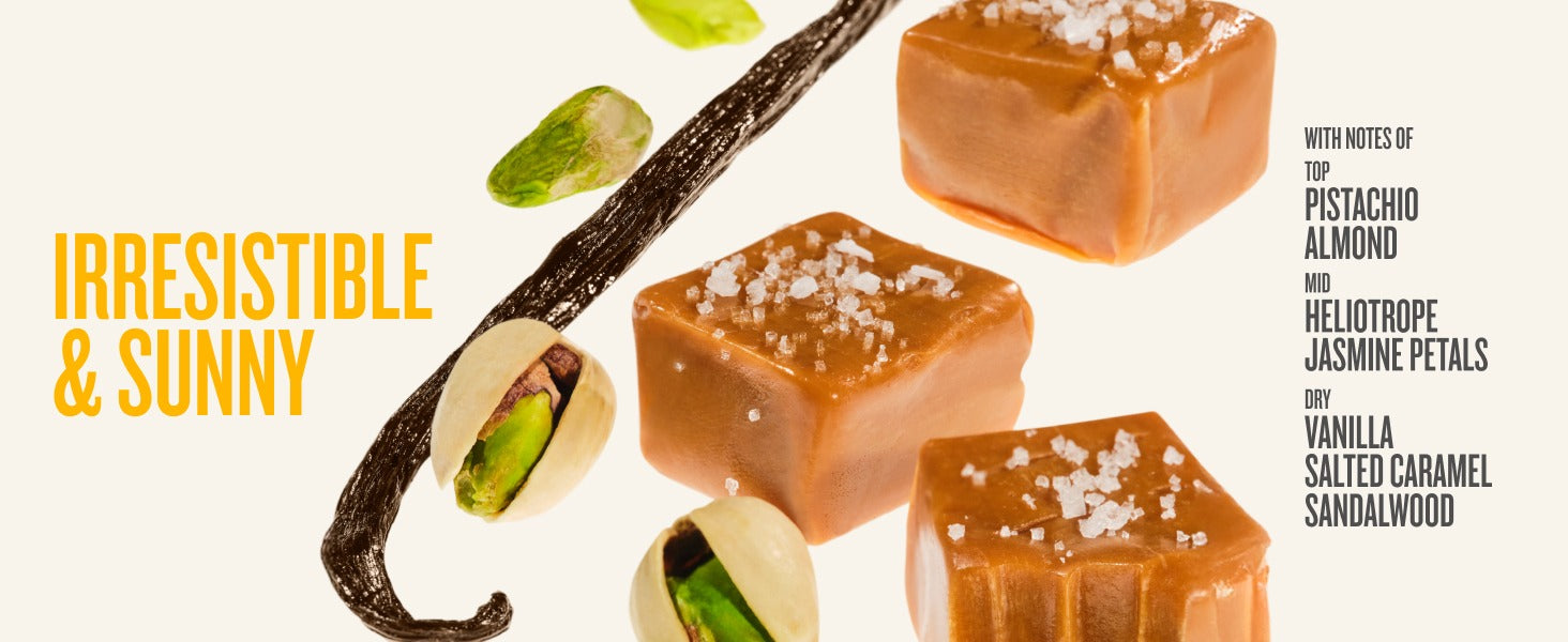 Warm notes of pistachio and salted caramel for an irresistible, beachy vibe.